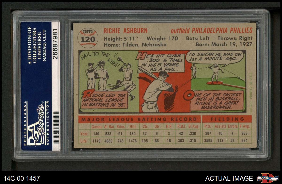 1956 Topps #120 GRY Richie Ashburn PSA 7 - NM