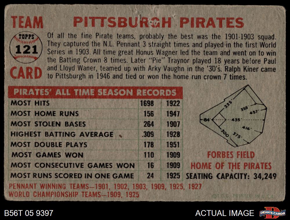 1956 Topps #121 GRY Pirates Team