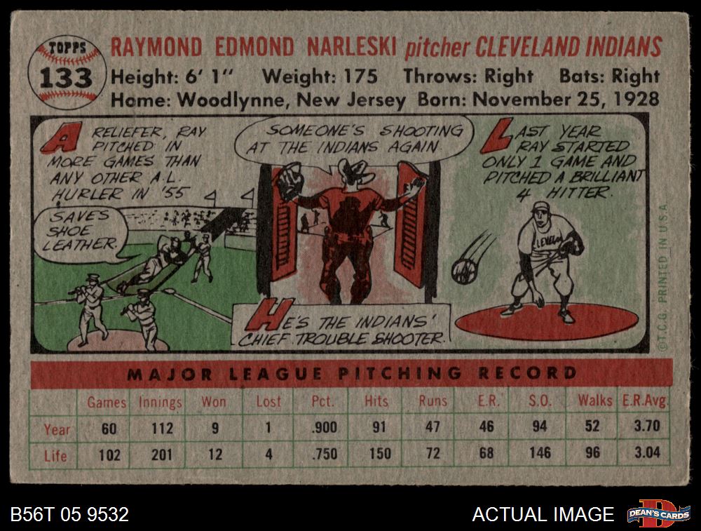 1956 Topps #133 GRY Ray Narleski 3 - VG