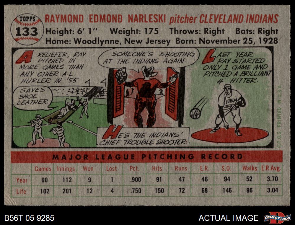1956 Topps #133 GRY Ray Narleski 4 - VG/EX