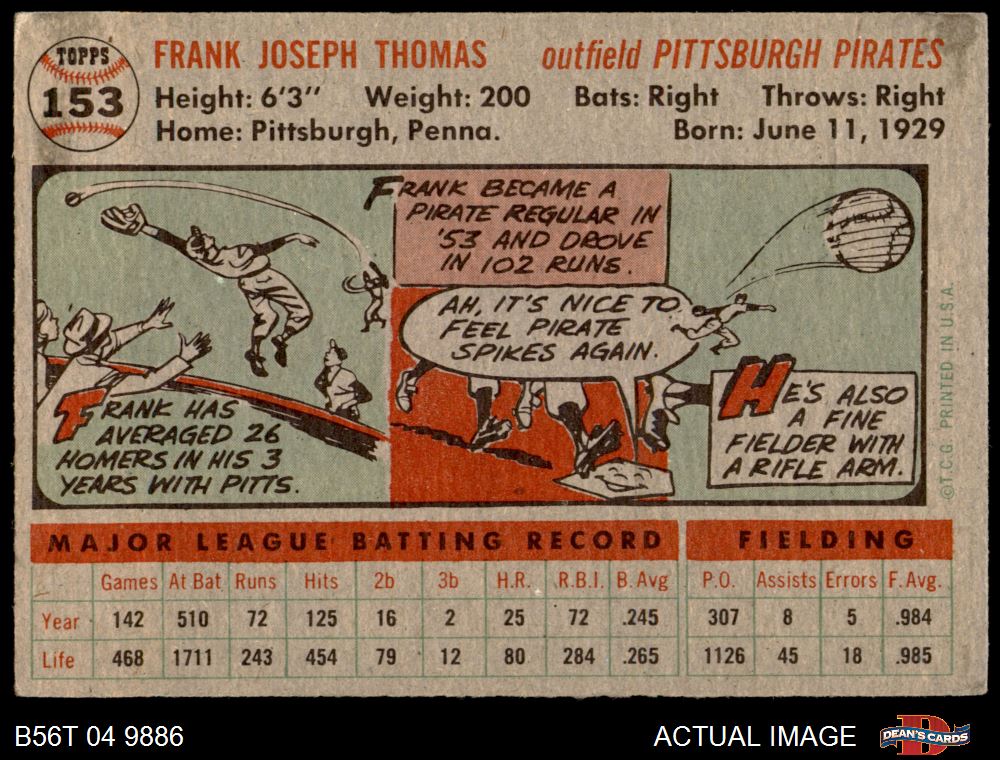 1956 Topps #153 GRY Frank Thomas 4.5 - VG/EX+