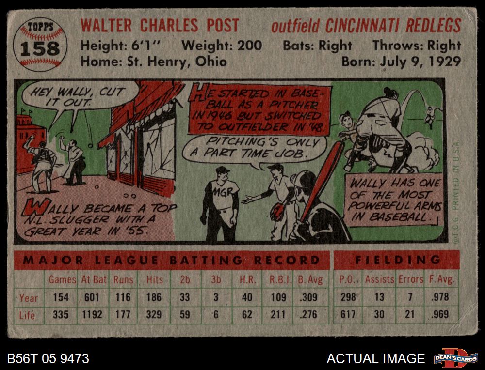 1956 Topps #158 GRY Wally Post 2 - GOOD