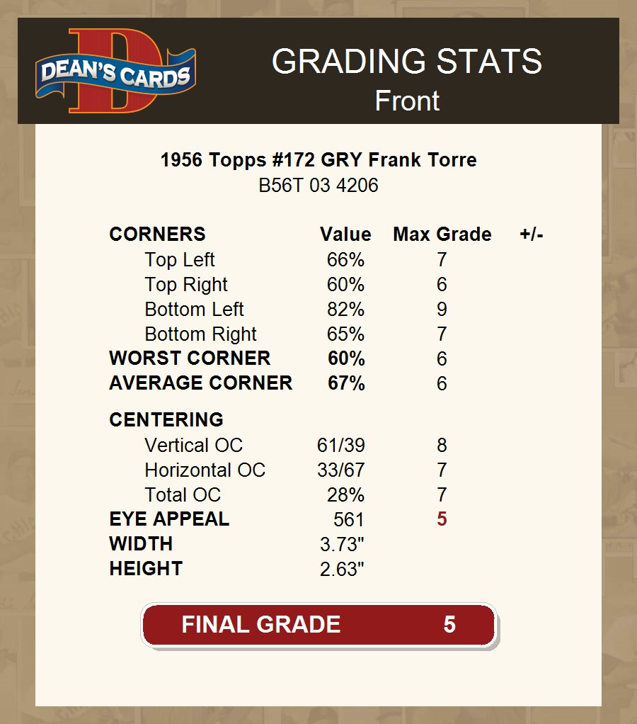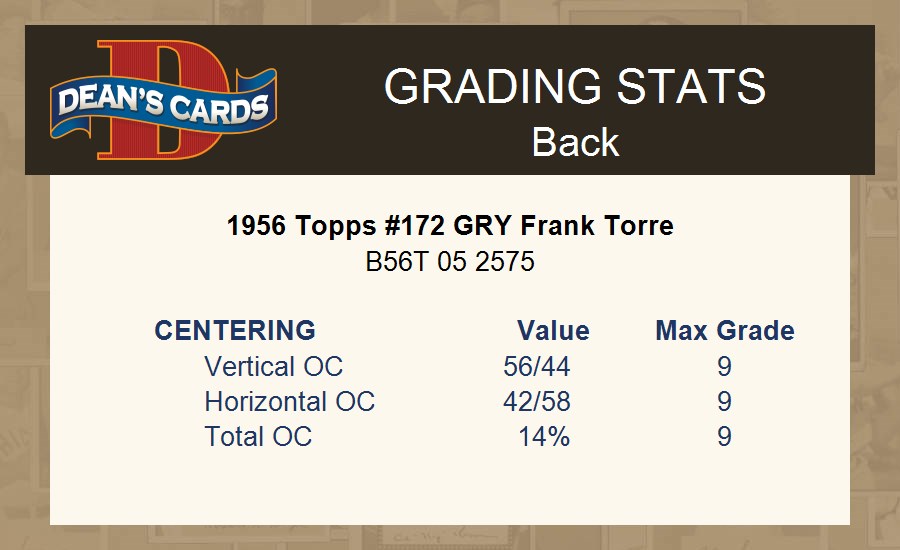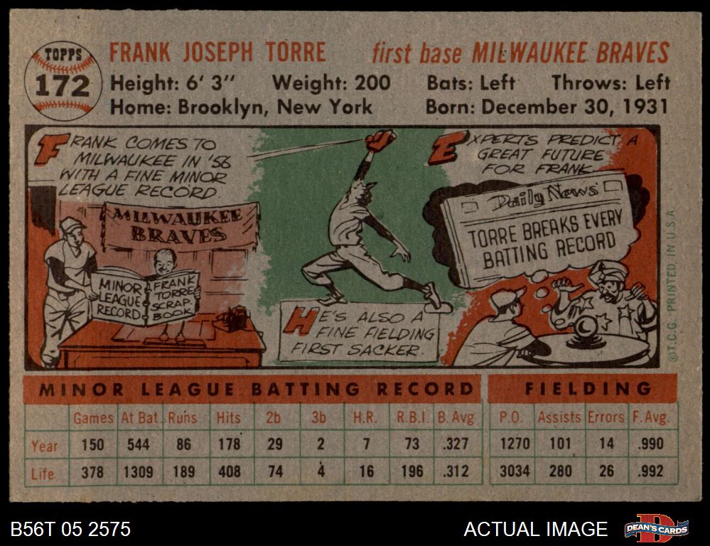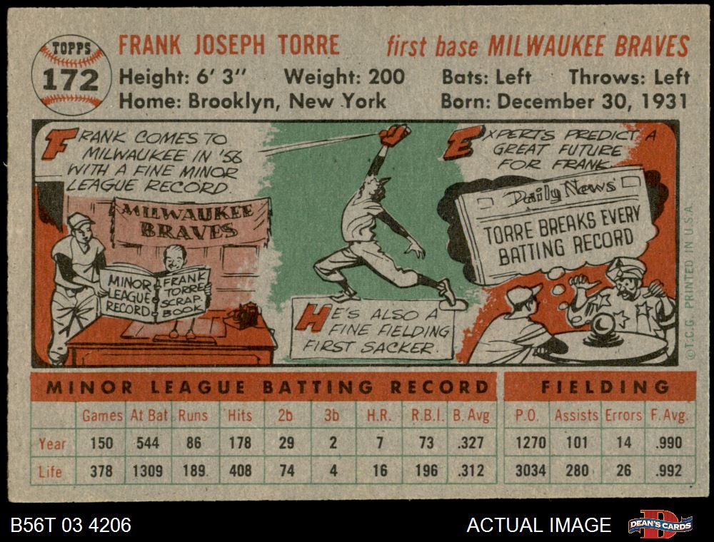 1956 Topps #172 GRY Frank Torre 5 - EX