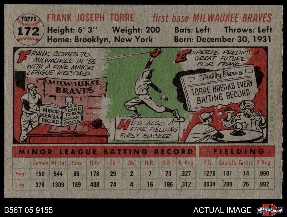 1956 Topps #172 GRY Frank Torre 7.5 - NM+