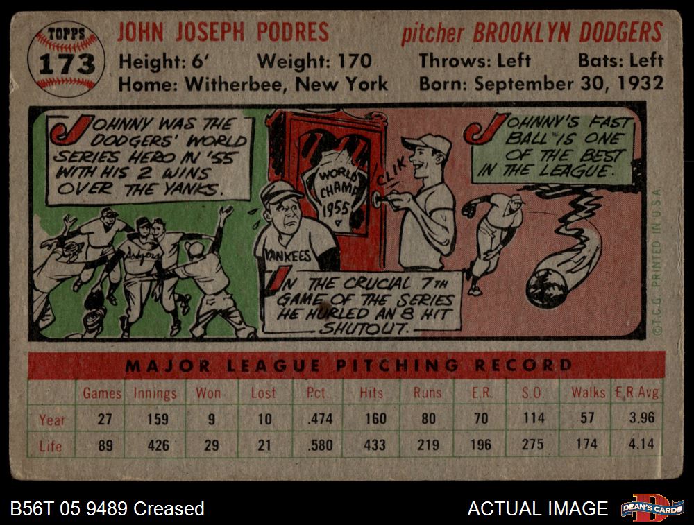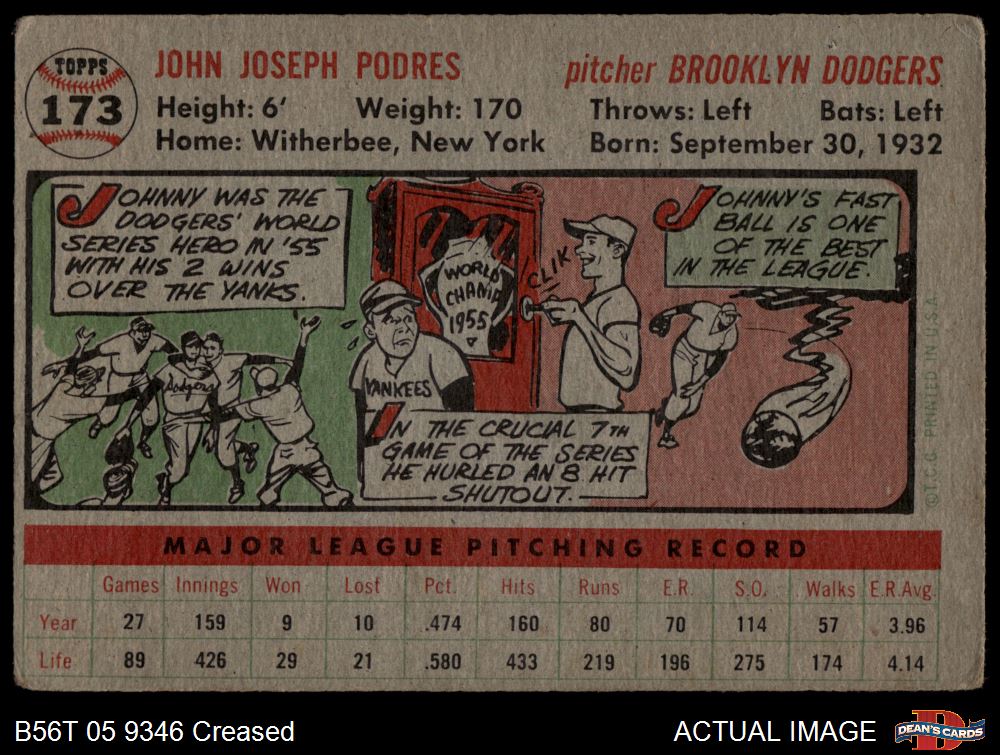 1956 Topps #173 GRY Johnny Podres 1 - POOR