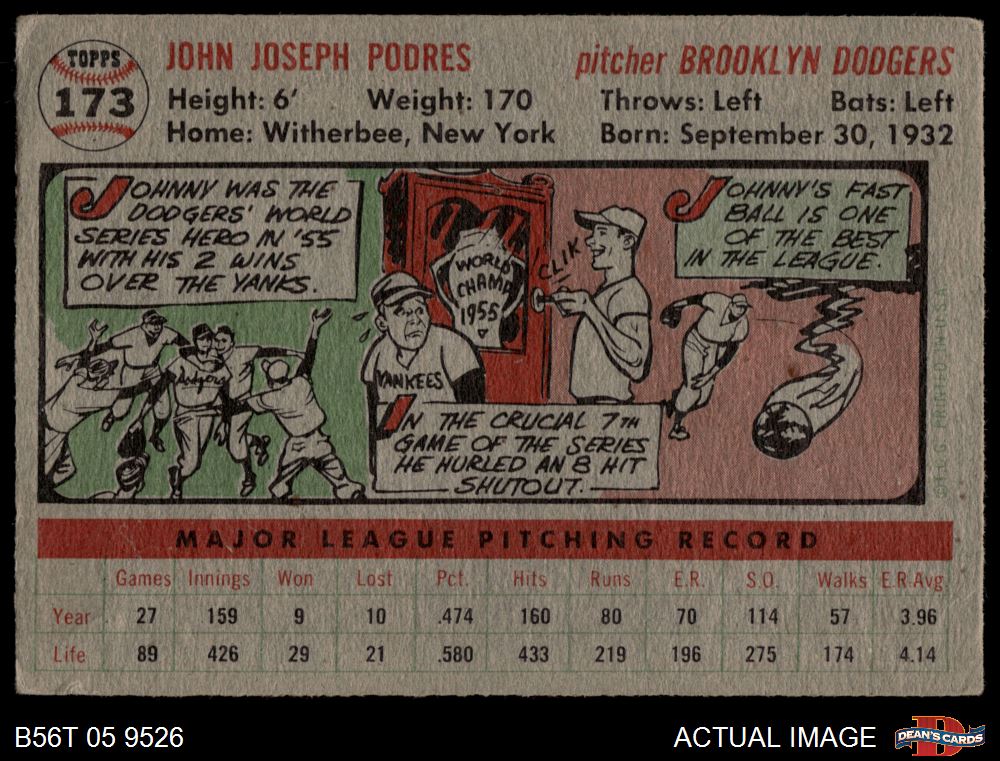 1956 Topps #173 GRY Johnny Podres 2 - GOOD