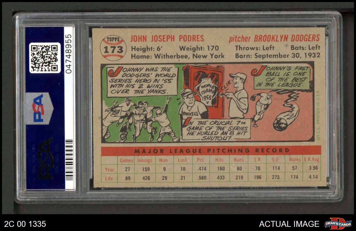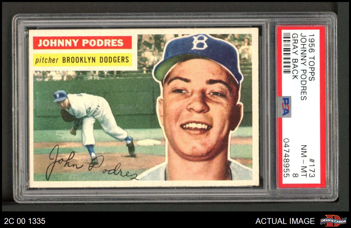 1956 Topps #173 GRY Johnny Podres PSA 8 - NM/MT
