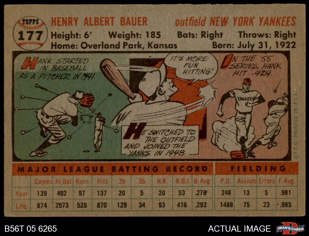 1956 Topps #177 GRY Hank Bauer 2.5 - GD+