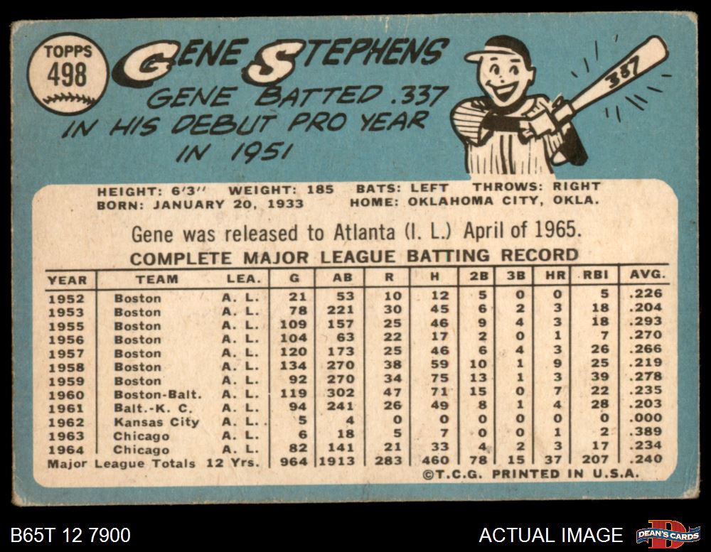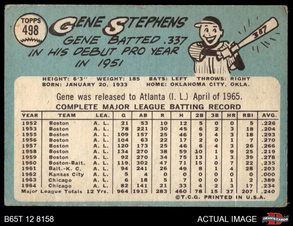 1965 Topps #498 Gene Stephens 1.5 - FAIR