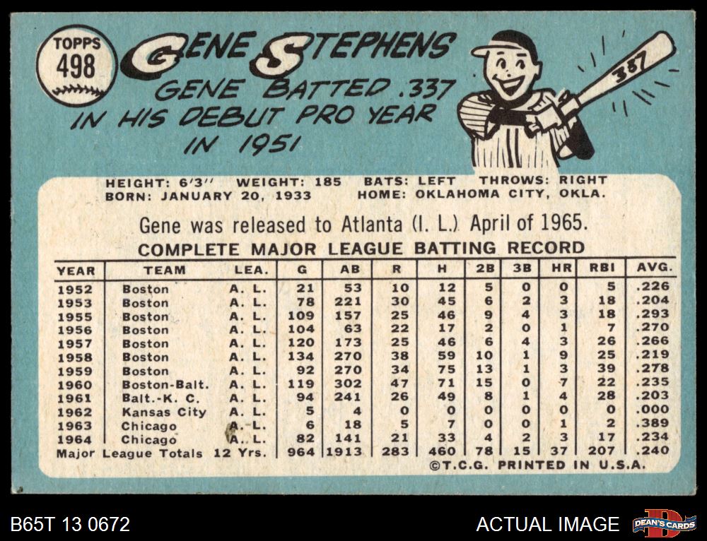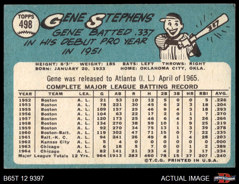 1965 Topps #498 Gene Stephens 4 - VG/EX