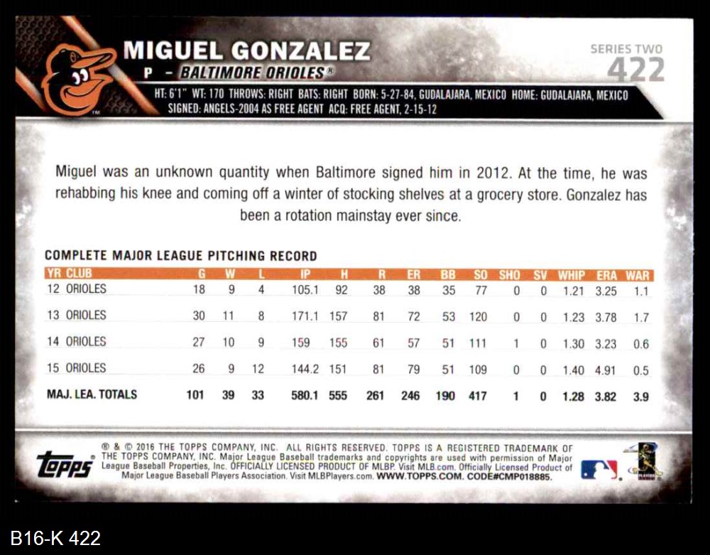 2016 Topps #422 Miguel Gonzalez