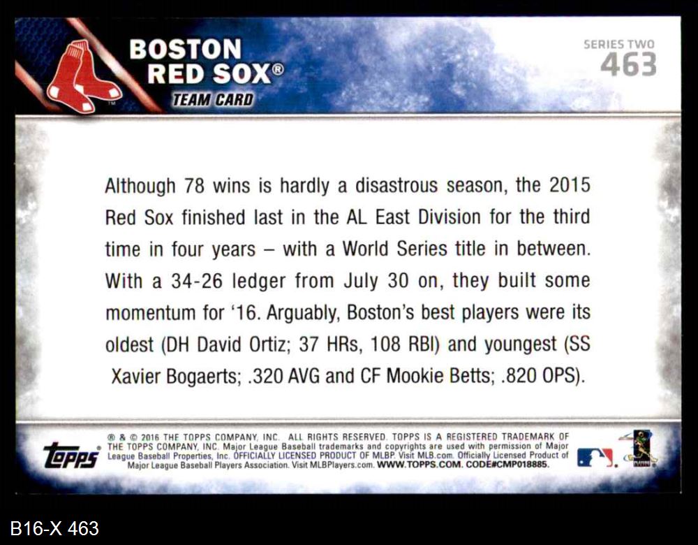 2016 Topps #463 Red Sox Team 8 - NM/MT