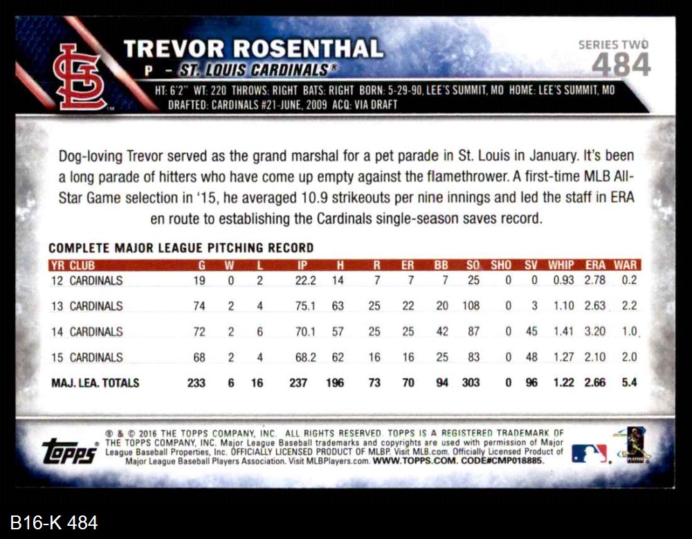 2016 Topps #484 A Trevor Rosenthal