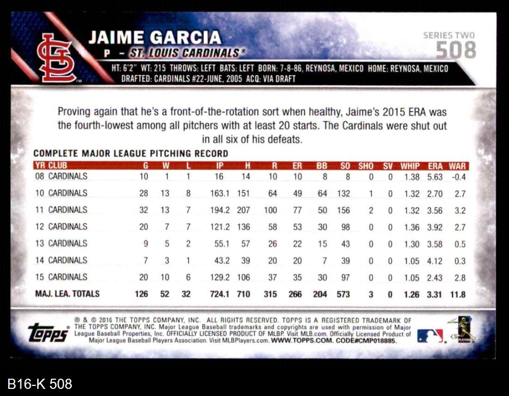 2016 Topps #508 Jaime Garcia 8 - NM/MT