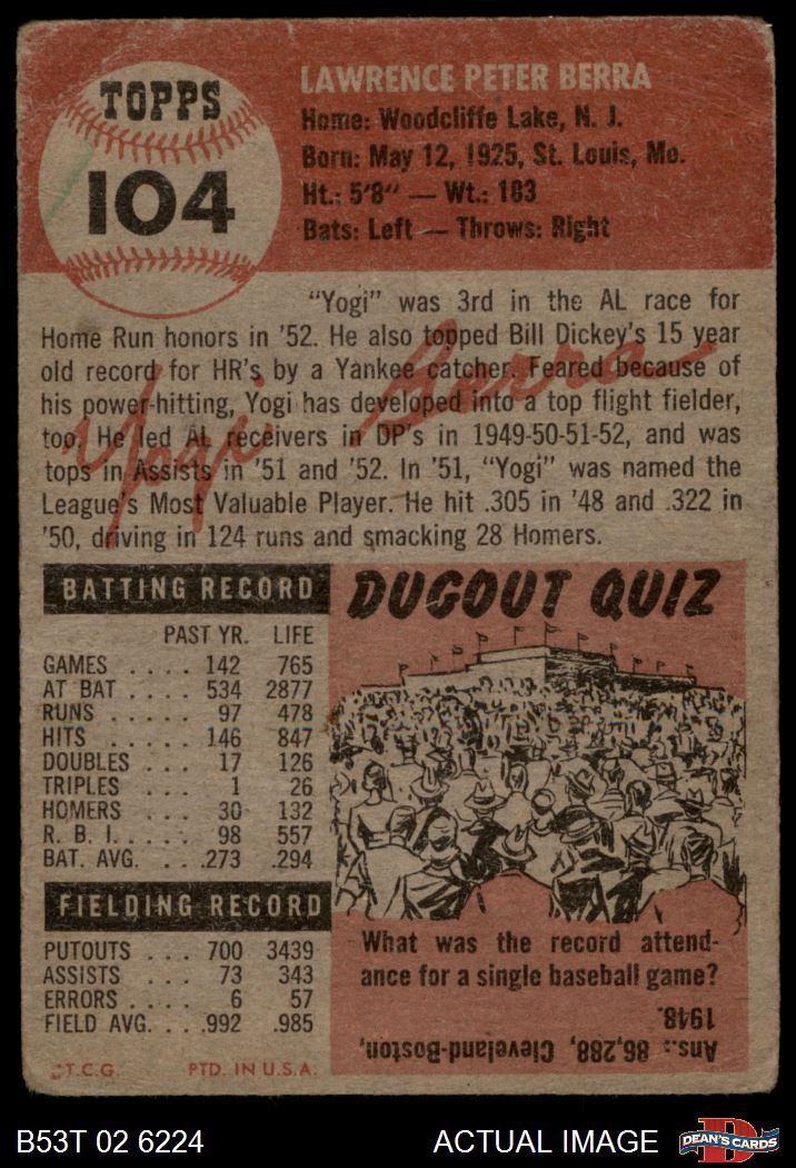 1953 Topps #104 Yogi Berra 1 - POOR