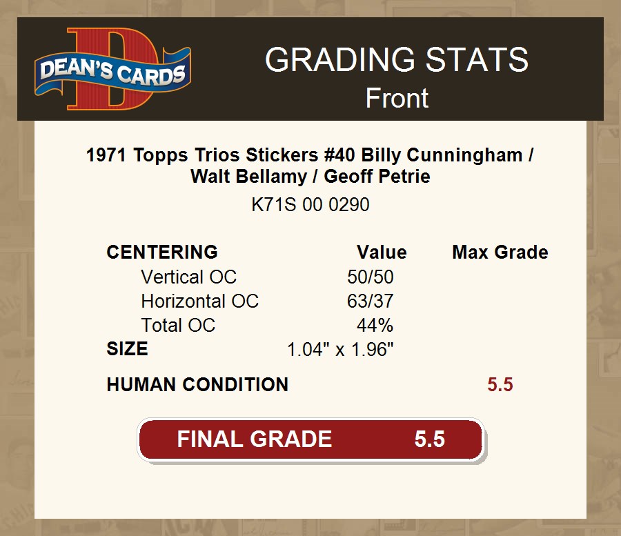 1971 Topps Trios Stickers #40 Billy Cunningham / Walt Bellamy / Geoff Petrie 5.5 - EX+