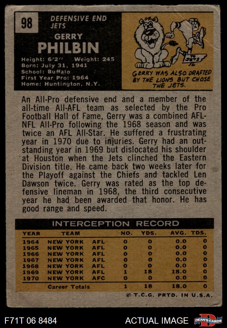 1971 Topps #98 Gerry Philbin 1 - POOR