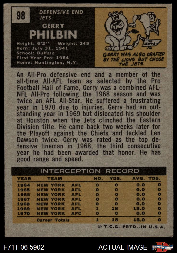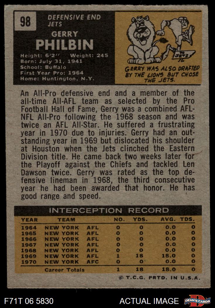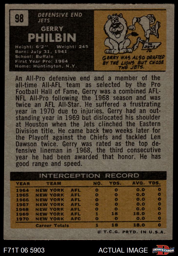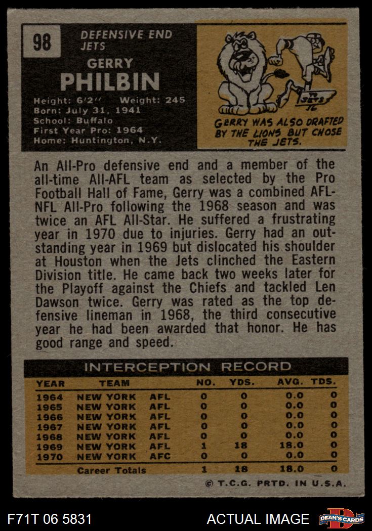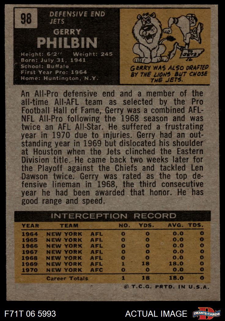 1971 Topps Football Cards (4,322 available)1971 Topps Jets (188 available)