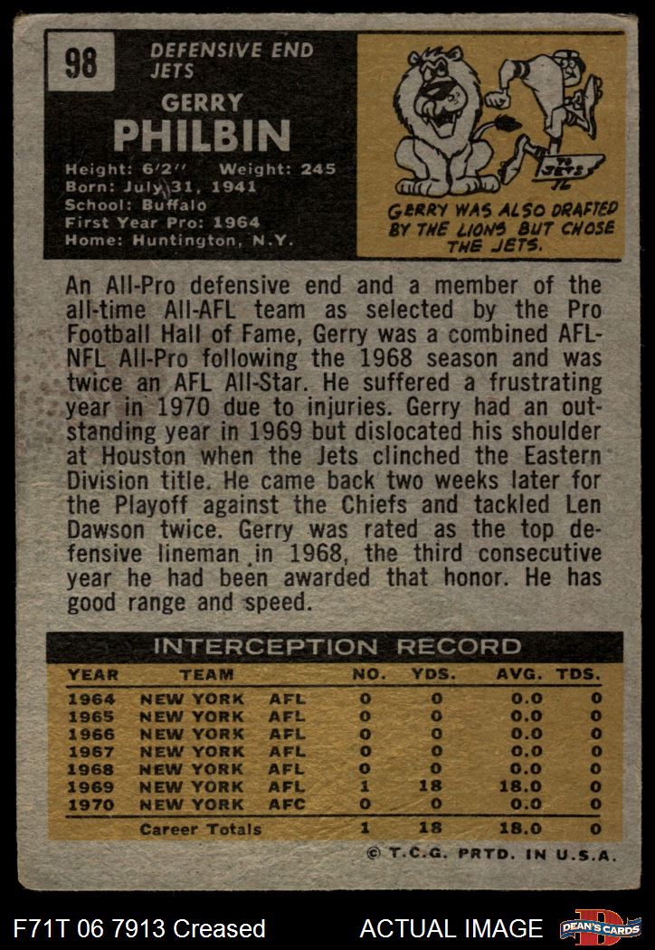 1971 Topps #98 Gerry Philbin 2 - GOOD