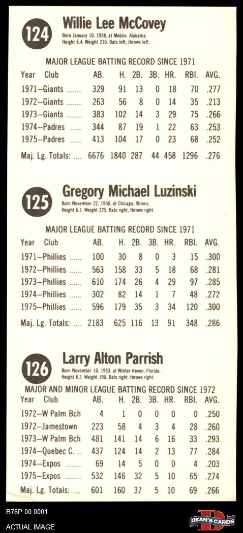 1976 Hostess Panels #124 #125 #126 Willie McCovey / Greg Luzinski / Larry Parrish 4 - VG/EX