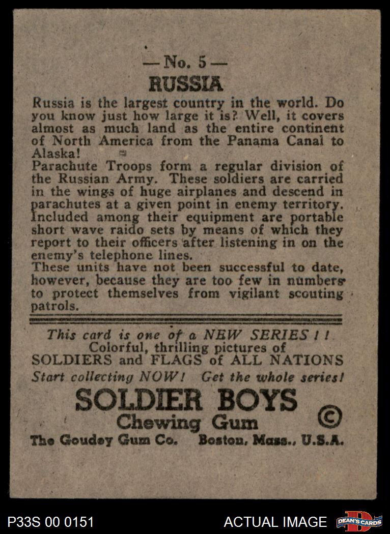 1933 Goudey Soldier Boys #5 Russia 4 - VG/EX