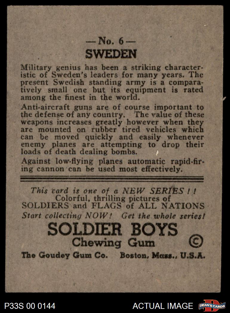 1933 Goudey Soldier Boys #6 Sweden 5 - EX
