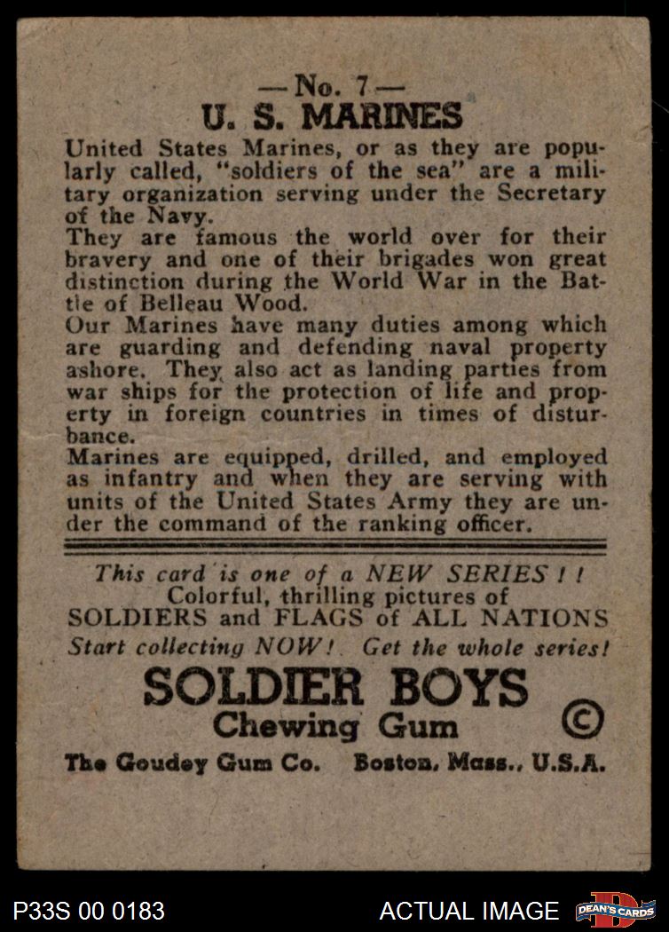1933 Goudey Soldier Boys #7 U. S. Marines 1.5 - FAIR