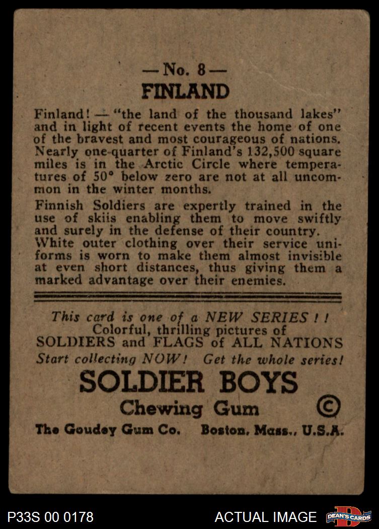 1933 Goudey Soldier Boys #8 Finland 2 - GOOD