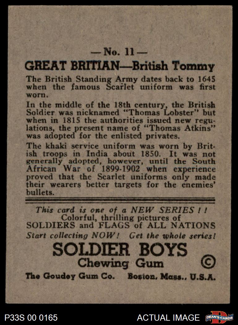 1933 Goudey Soldier Boys #11 Great Britain - British Tommy 3 - VG
