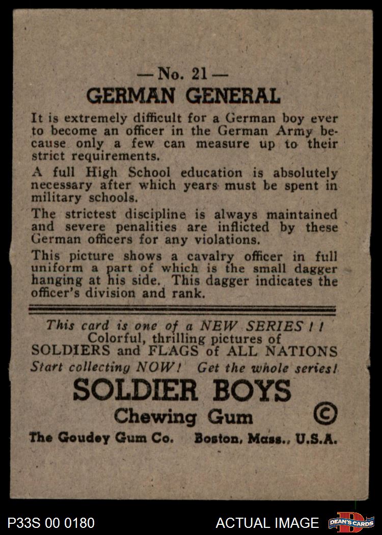 1933 Goudey Soldier Boys #21 German General 2 - GOOD