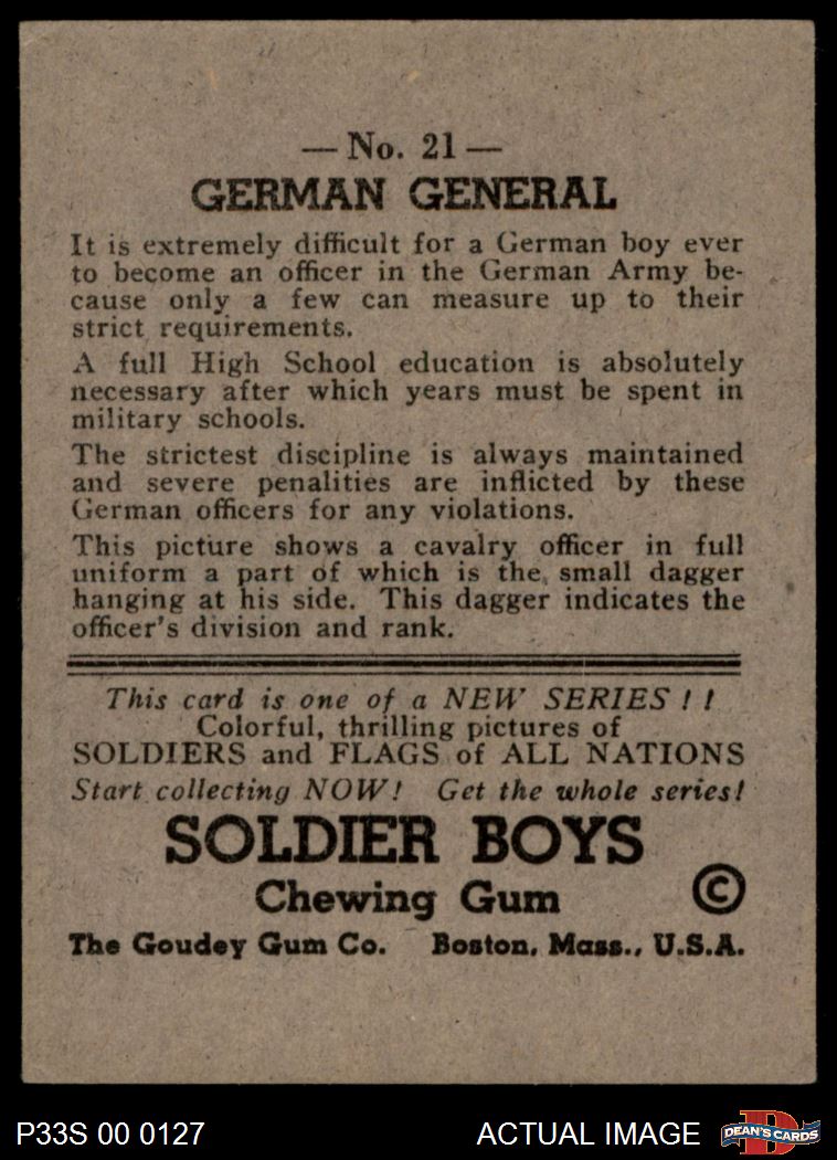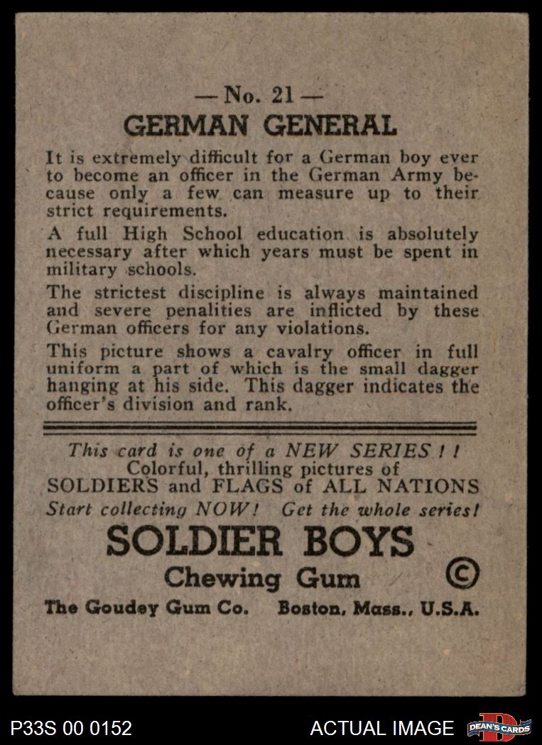 1933 Goudey Soldier Boys #21 German General 4 - VG/EX