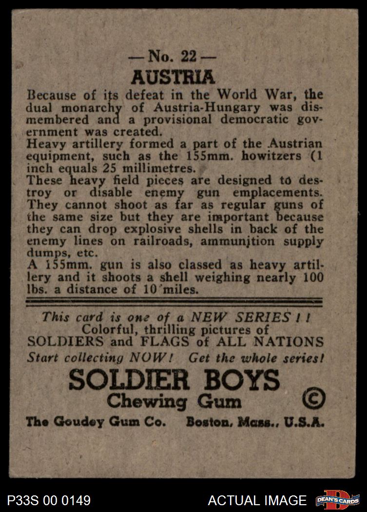1933 Goudey Soldier Boys #22 Austria 4 - VG/EX