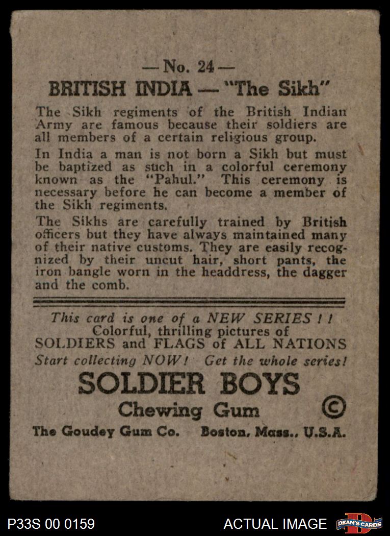 1933 Goudey Soldier Boys #24 British India - The Sikh Front Thumbnail