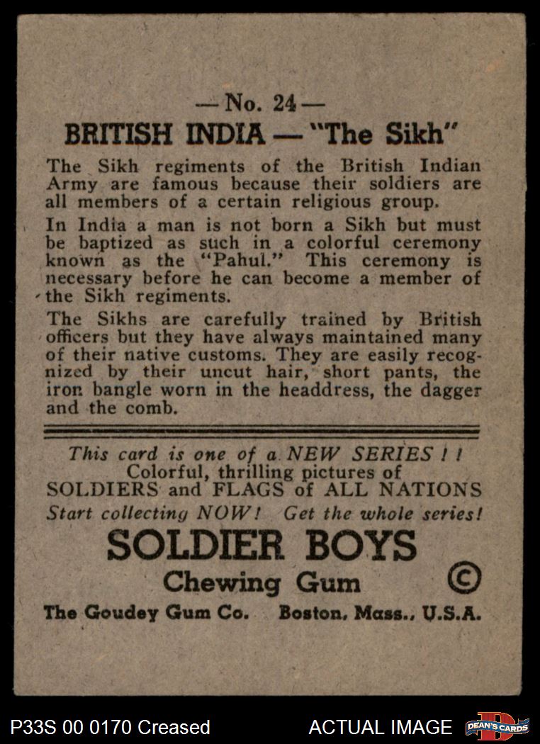 1933 Goudey Soldier Boys #24 British India - The Sikh 3 - VG