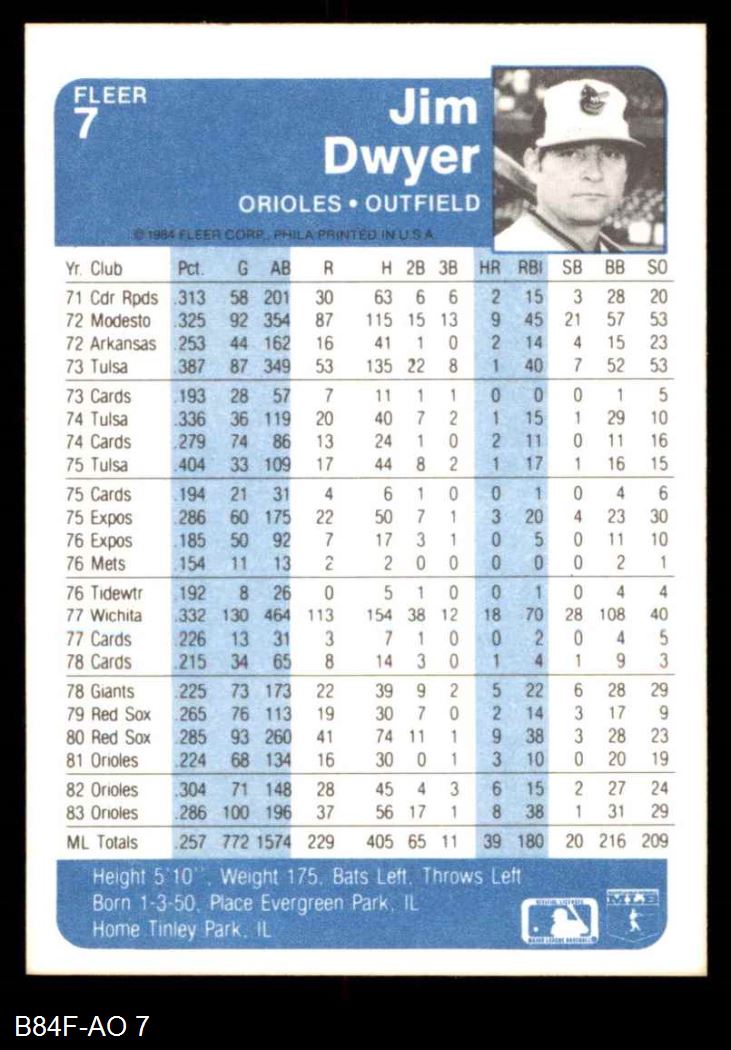 1984 Fleer #7 Jim Dwyer