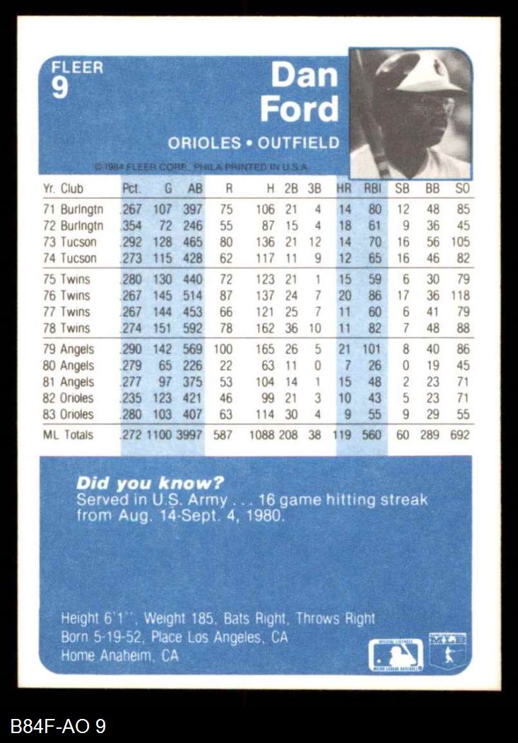 1984 Fleer #9 Dan Ford 8 - NM/MT