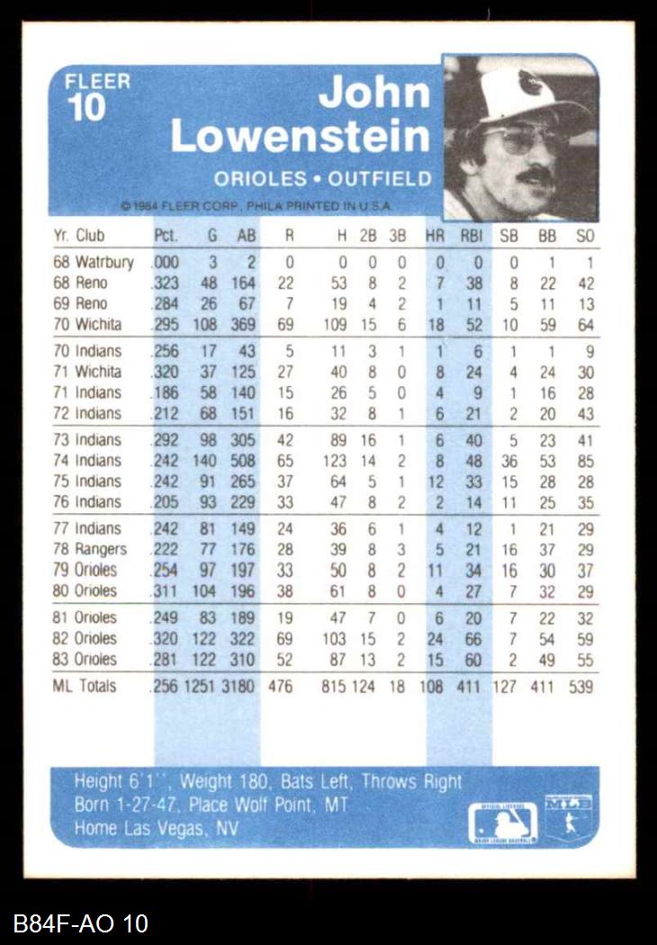 1984 Fleer #10 John Lowenstein 8 - NM/MT