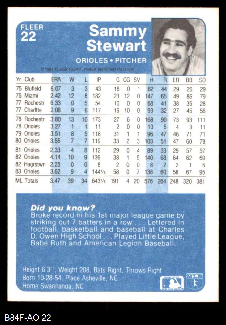 1984 Fleer Baseball Cards (1,894 available)1984 Fleer Orioles (69 available)