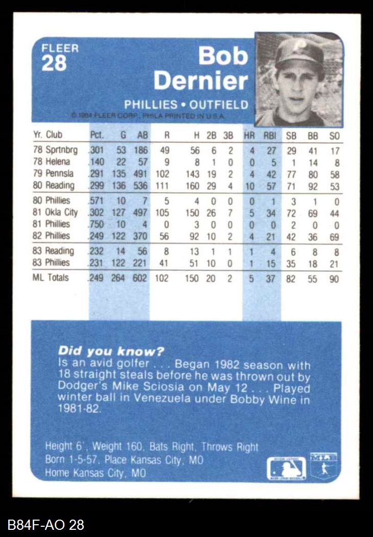 1984 Fleer #28 Bob Dernier