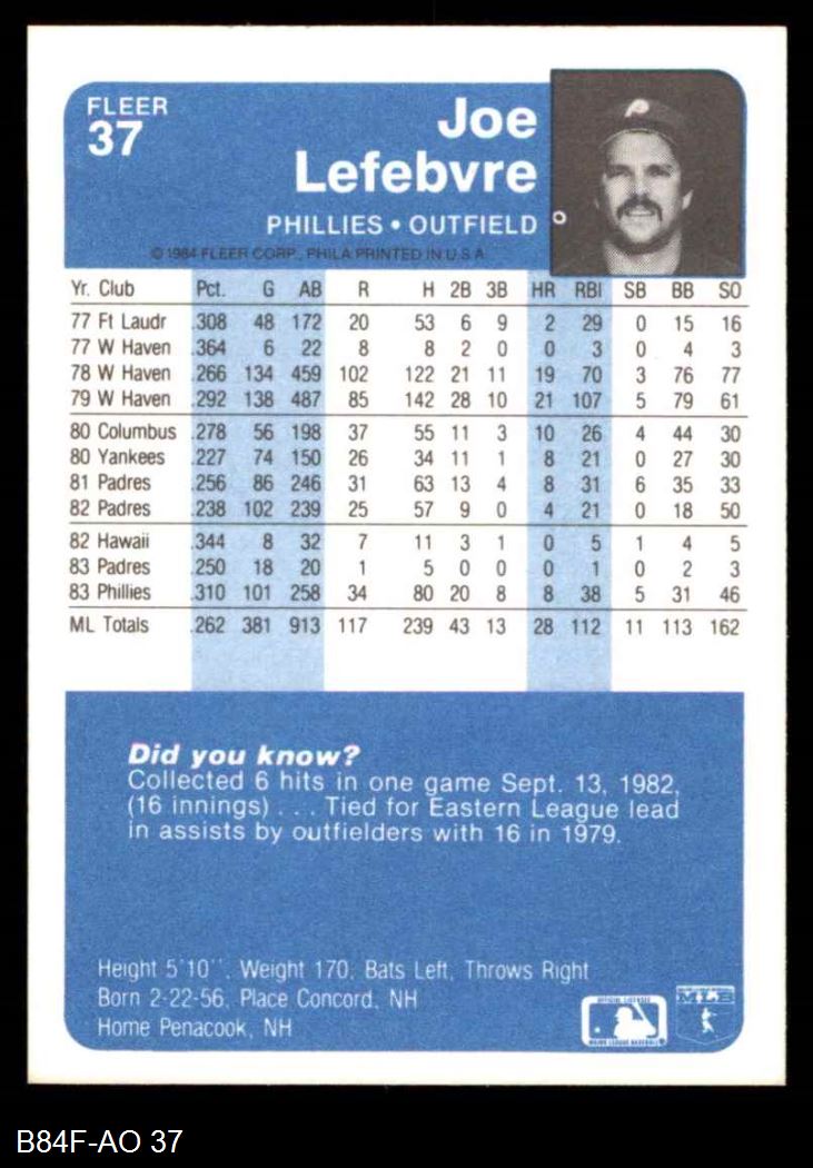 1984 Fleer Baseball Cards (1,882 available)1984 Fleer Phillies (60 available)