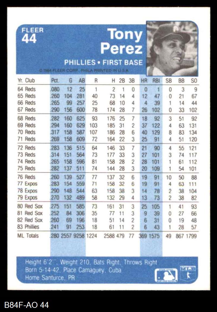 1984 Fleer #44 Tony Perez 8 - NM/MT