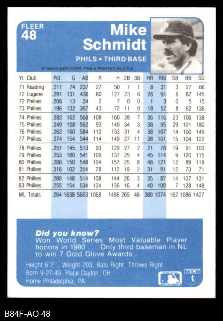1984 Fleer #48 Mike Schmidt 8 - NM/MT