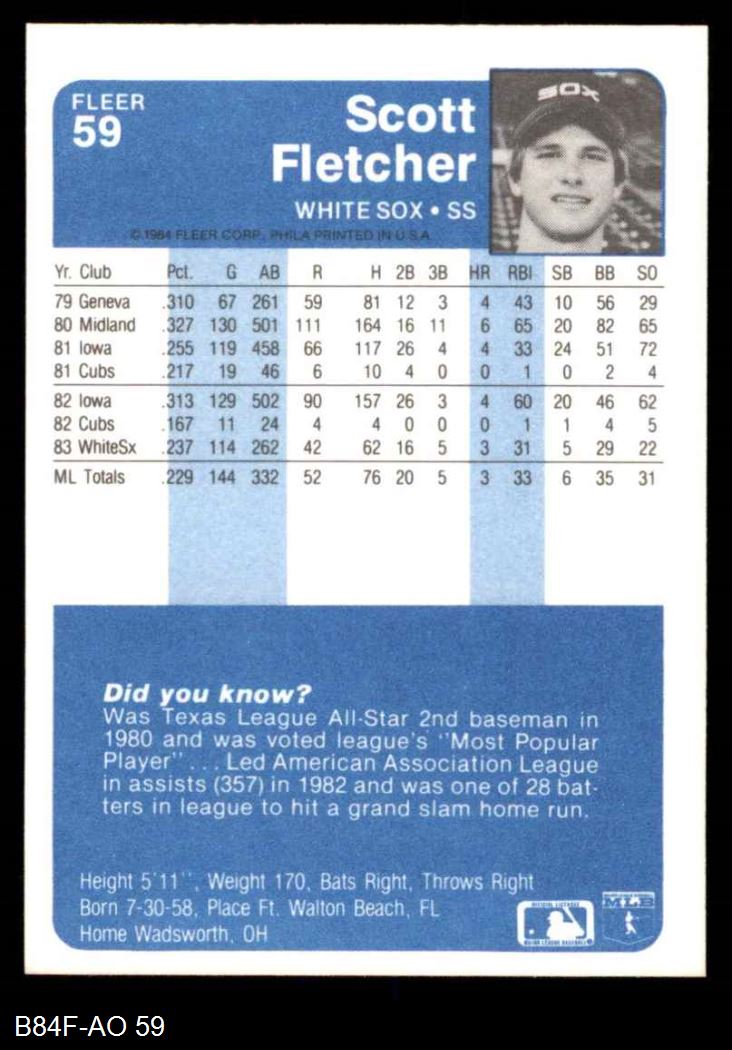 1984 Fleer #59 Scott Fletcher 8 - NM/MT