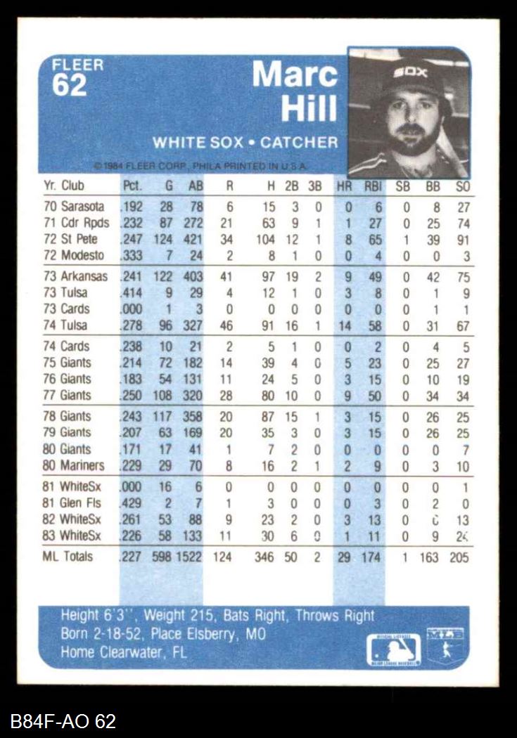 1984 Fleer Baseball Cards (1,882 available)1984 Fleer White Sox (58 available)