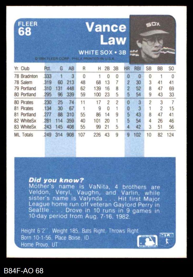 1984 Fleer Baseball Cards (1,885 available)1984 Fleer White Sox (58 available)