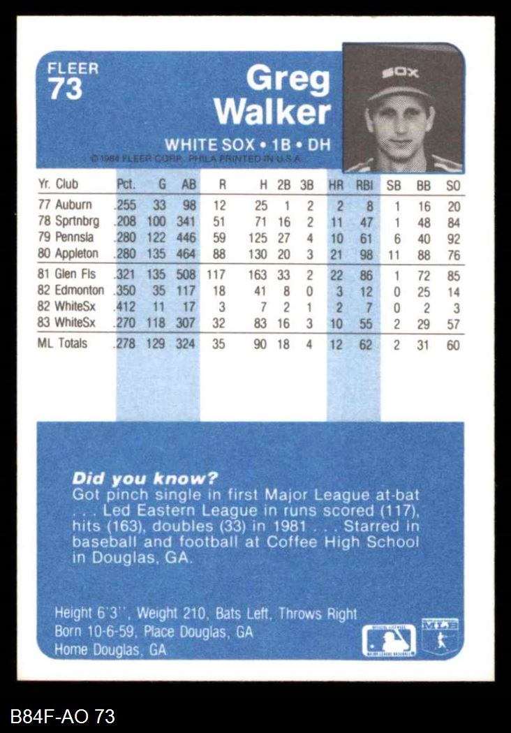 1984 Fleer Baseball Cards (1,885 available)1984 Fleer White Sox (58 available)