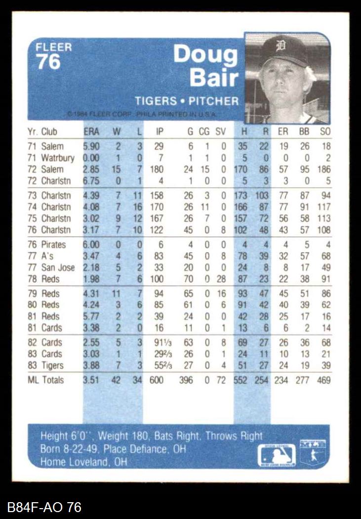 1984 Fleer #76 Doug Bair 8 - NM/MT