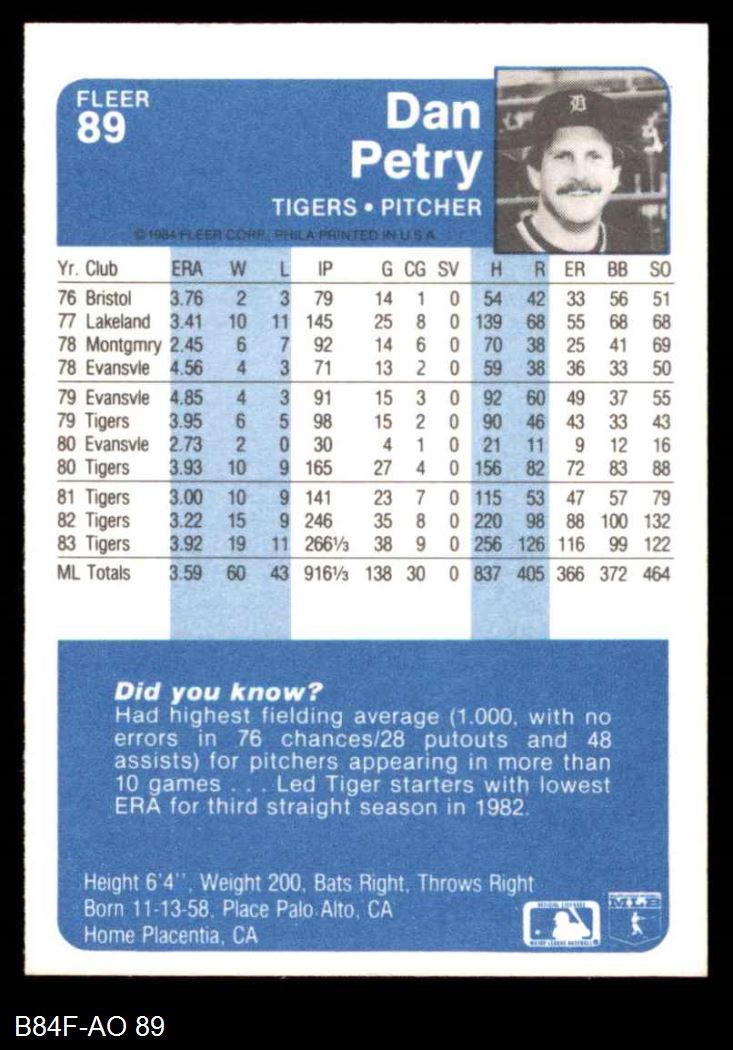 1984 Fleer #89 Dan Petry 8 - NM/MT