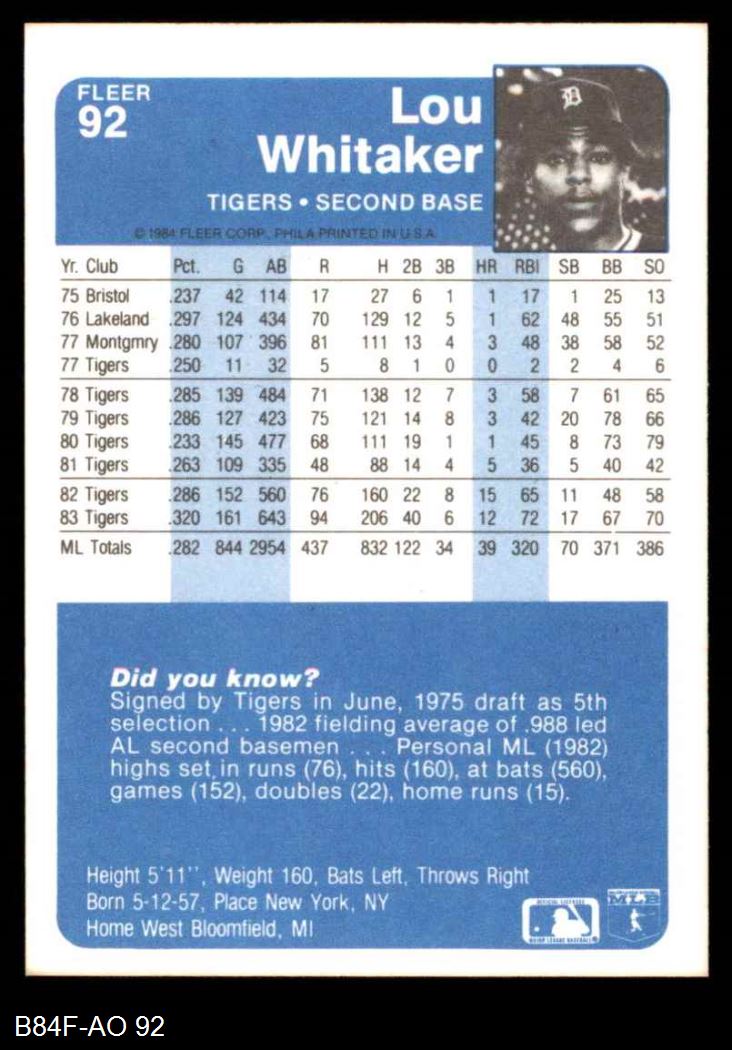 1984 Fleer Baseball Cards (1,894 available)1984 Fleer Tigers (48 available)