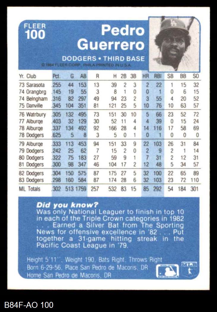 1984 Fleer Baseball Cards (1,882 available)1984 Fleer Dodgers (68 available)